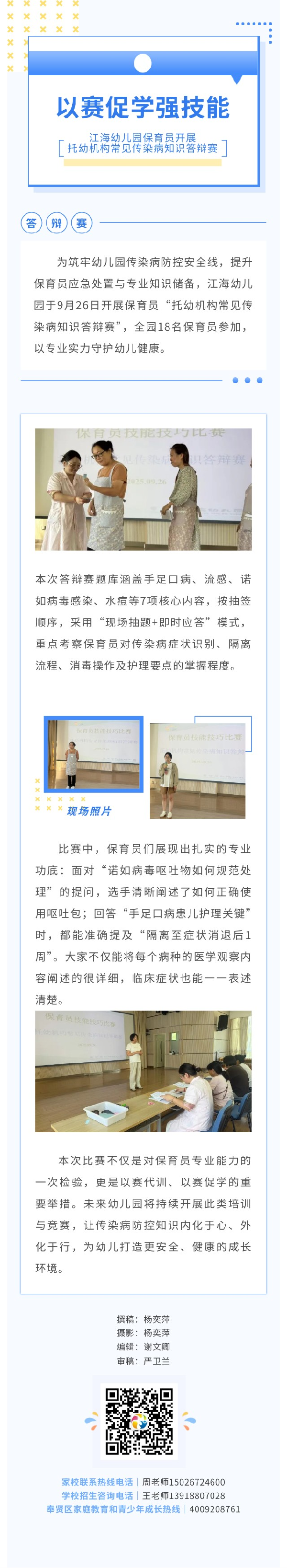 【江幼·保健】以赛促学强技能——江海幼儿园保育员开展托幼机构常见传染病知识答辩赛