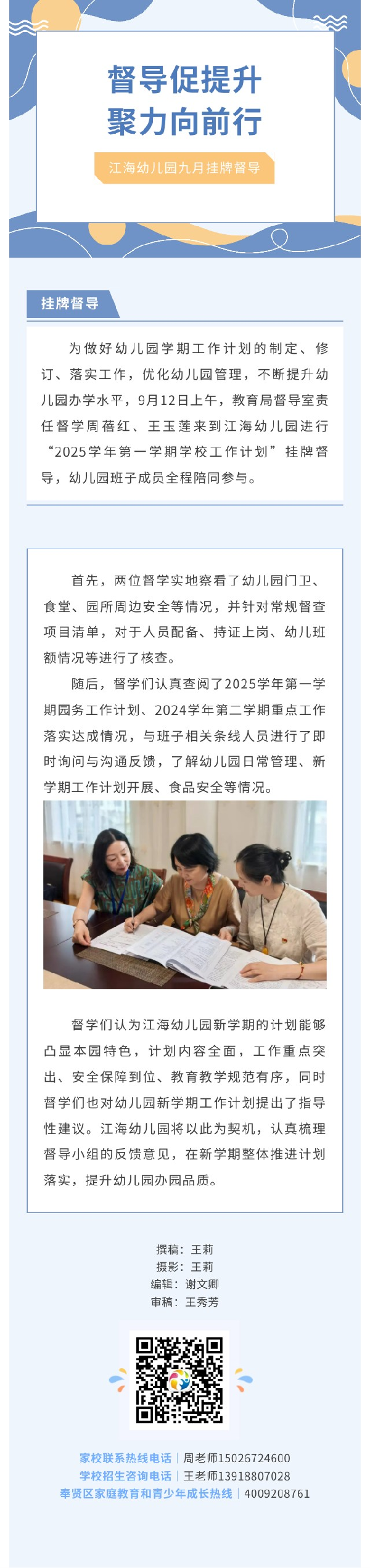 督导促提升 聚力向前行——江海幼儿园九月挂牌督导